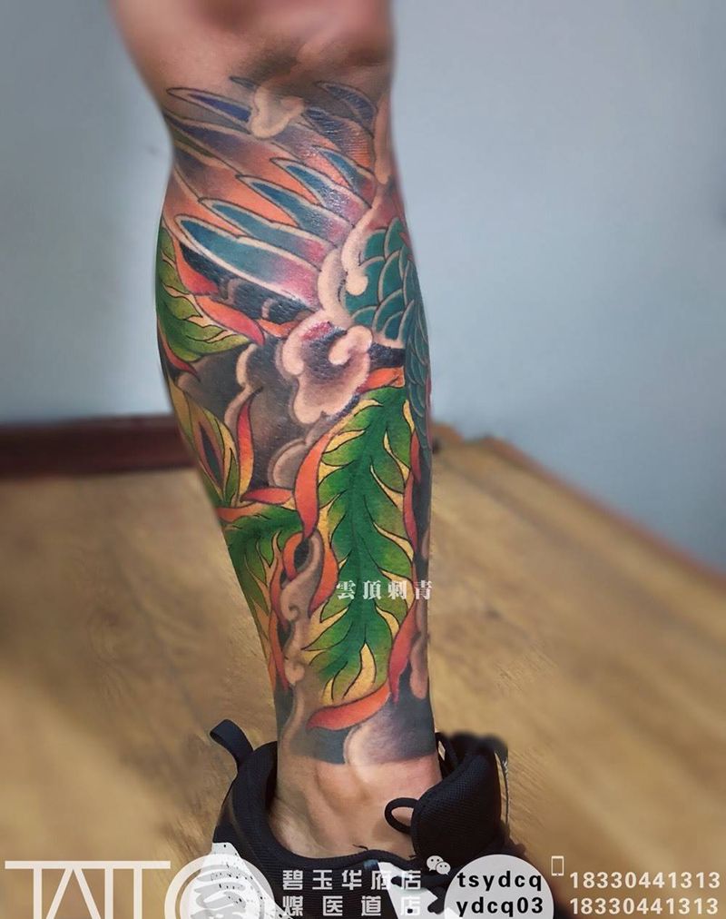 • T网红王老大花腿龙纹身图片_腿部新传统纹身图案
