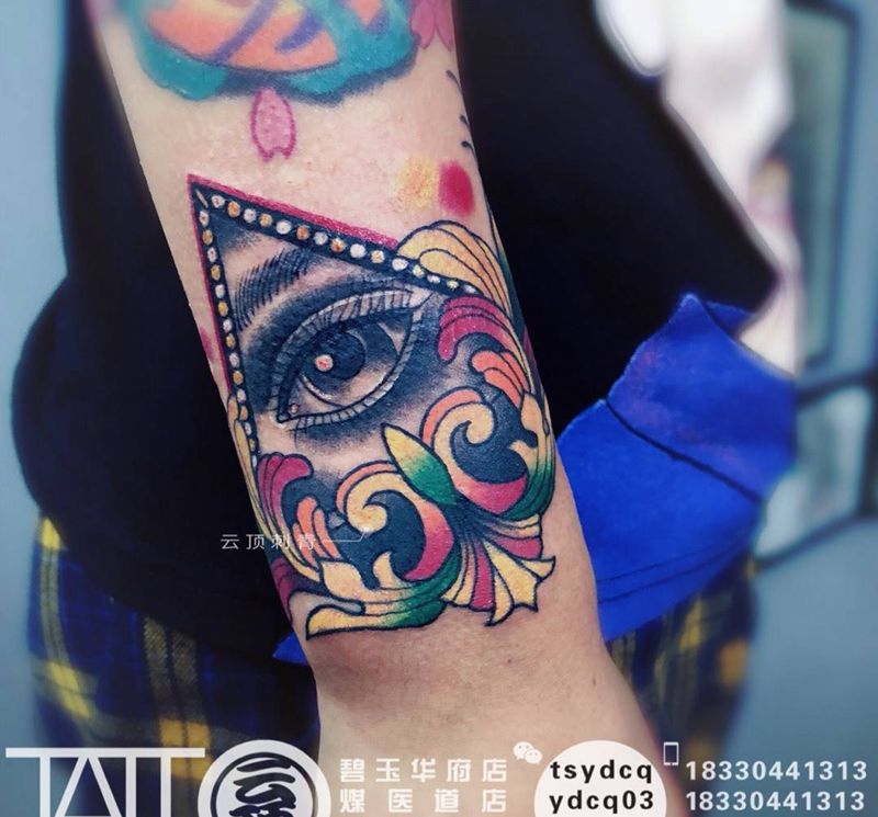 欧美花臂拼接 全视之眼纹身图片_手臂New School纹身图案