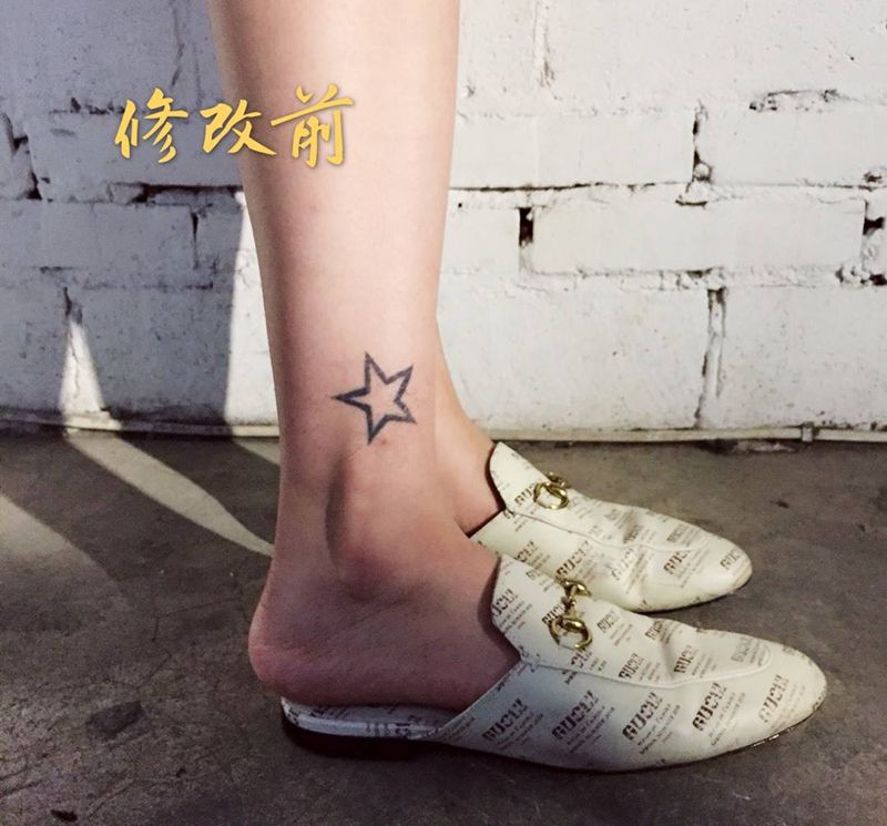 老纹身修改纹身图片_腿部水彩星星纹身图案