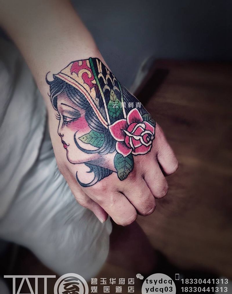 当前位置: 首页 >河北省唐山市纹身店-云顶刺青纹身图案>old school女郎纹身图片_手部Old School女郎 人物纹身图案