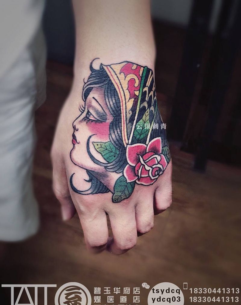 当前位置: 首页 >河北省唐山市纹身店-云顶刺青纹身图案>old school女郎纹身图片_手部Old School女郎 人物纹身图案