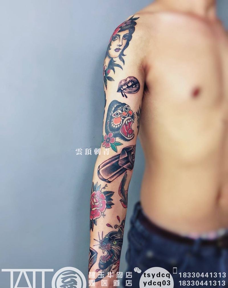 当前位置: 首页 >河北省唐山市纹身店-云顶刺青纹身图案>欧美花臂拼接纹身图片