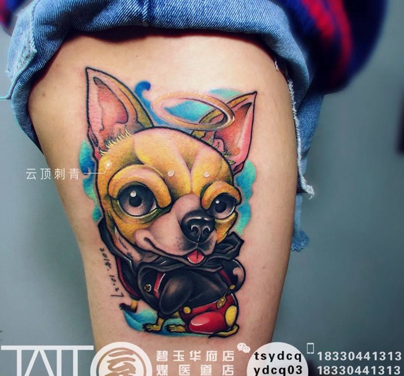 当前位置: 首页 >河北省唐山市纹身店-云顶刺青纹身图案>原创school狗纹身图片_腿部New School纹身图案