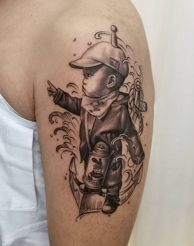 当前位置: 首页 >河北省唐山市纹身店-刺青侠文身工作室纹身图案>乘风破浪的宝宝纹身图片_手臂欧美写实纹身图案