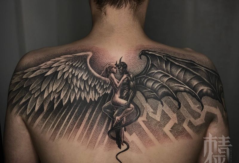 • 纹身吧推荐的披肩图腾半胛纹身图案作品展示