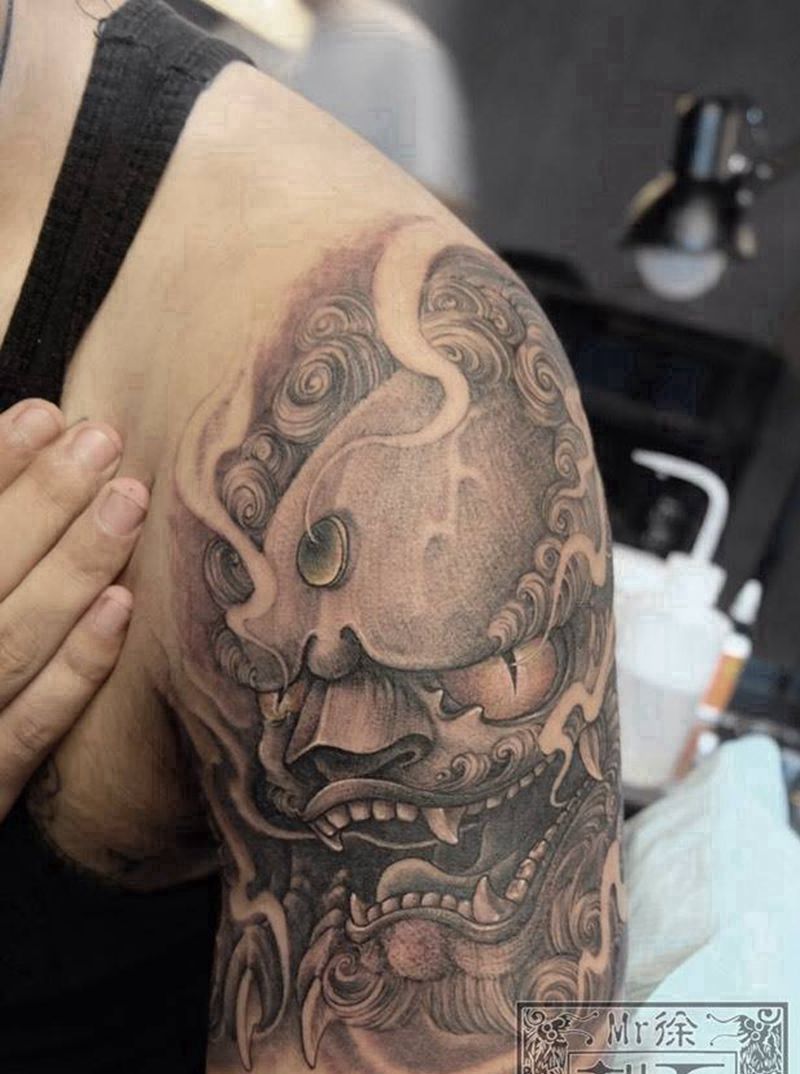 黑灰满背纹身图案