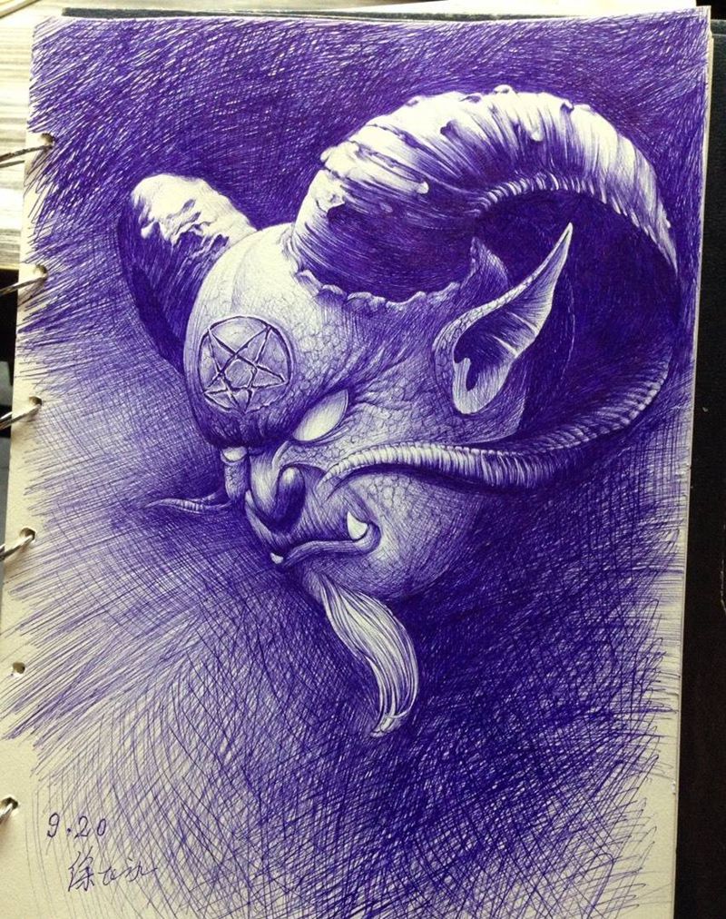 撒旦纹身图片_手稿欧美写实鬼神纹身图案