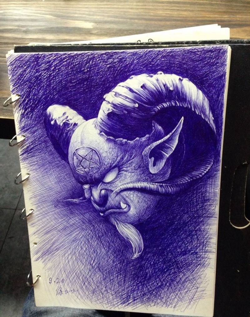 撒旦纹身图片_手稿欧美写实鬼神纹身图案