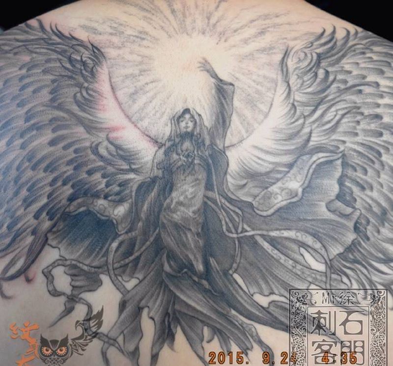 当前位置: 首页 >河北省石家庄市纹身店-石门刺客纹身纹身图案>守护天使纹身图片_成品背部欧美写实人物宗教原创天使纹身图案