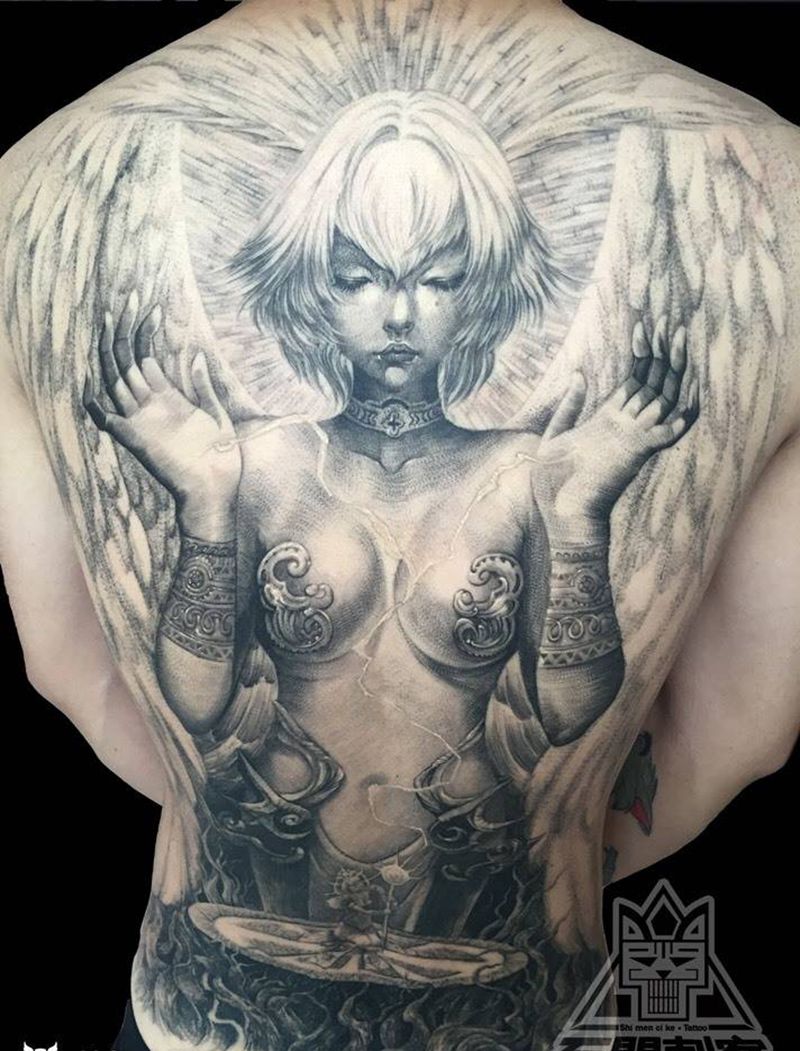 黑灰满背纹身图案
