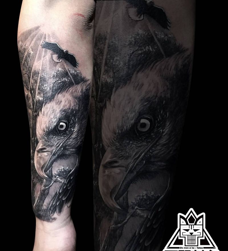 当前位置: 首页 >河北省石家庄市纹身店-石门刺客纹身纹身图案>鹰纹身图片_成品手臂欧美写实肖像动物纹身图案