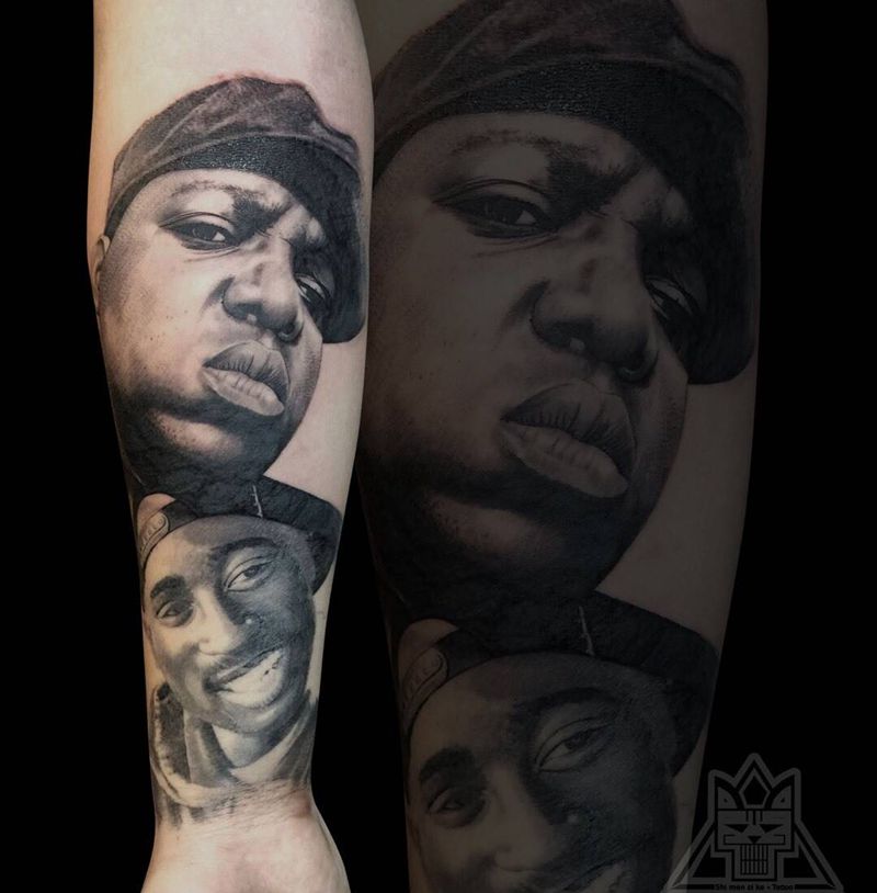 Biggie & 2pac纹身图片_成品手臂肖像欧美写实人物纹身图案
