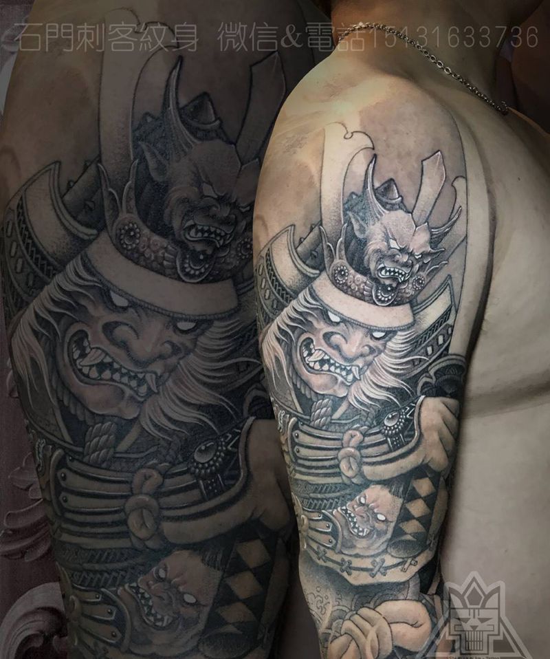 当前位置: 首页 >河北省石家庄市纹身店-石门刺客纹身纹身图案>鬼武花臂纹身图片_成品手臂传统欧美写实鬼神宗教人物动物纹身图案