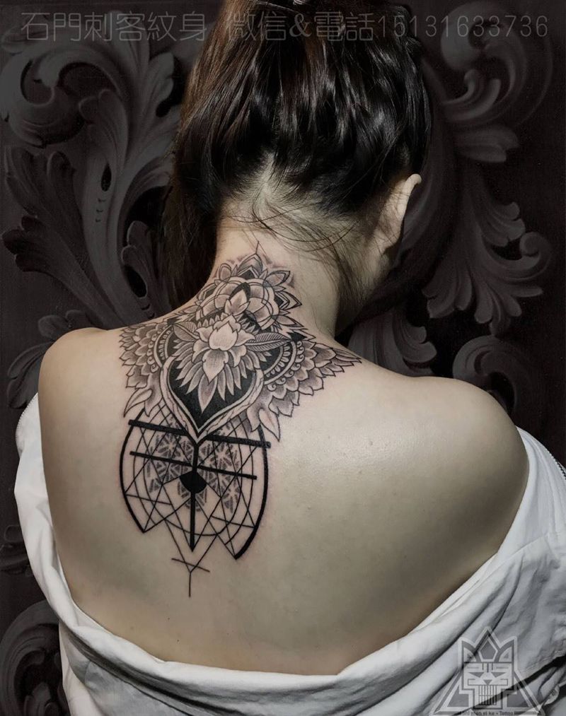 图腾梵花纹身图片_颈部背部图腾点刺梵花纹身图案