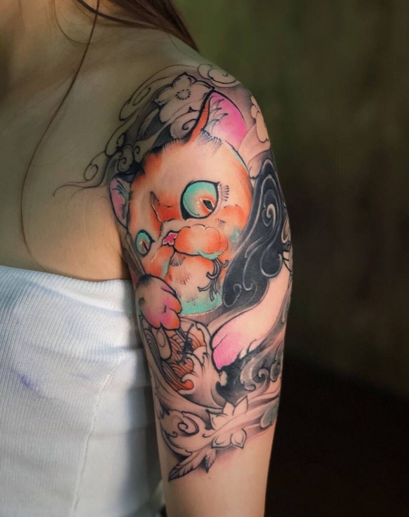 • T招财猫纹身图片