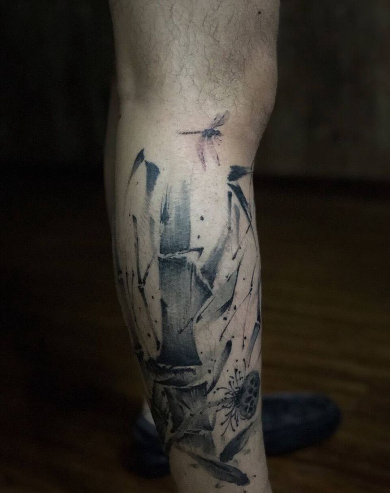 • T网红王老大花腿龙纹身图片_腿部新传统纹身图案
