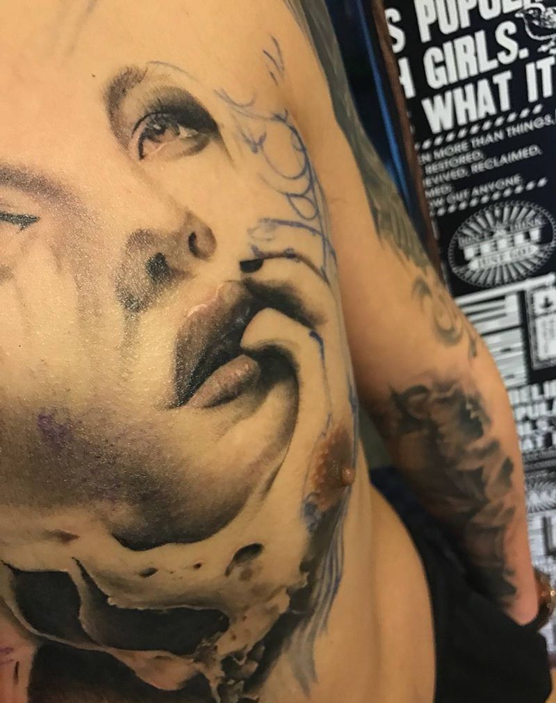 • 女性大花胸纹身_43张霸气漂亮的女性大花胸纹身图案作品