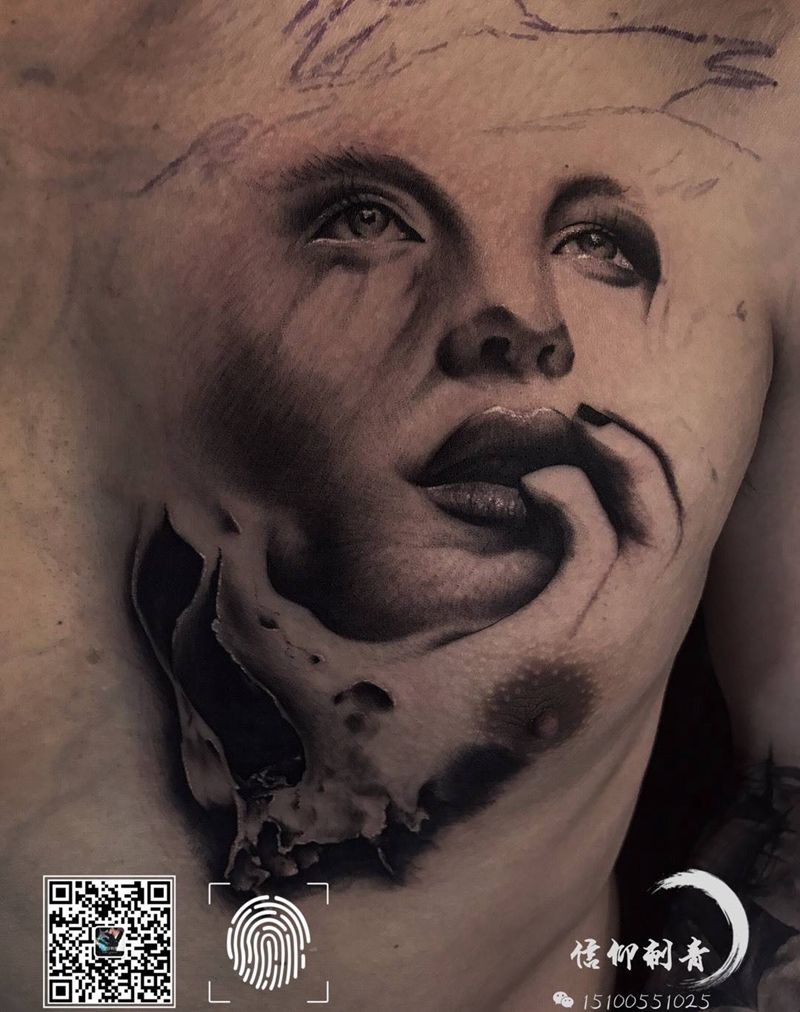 • 女性大花胸纹身_43张霸气漂亮的女性大花胸纹身图案作品