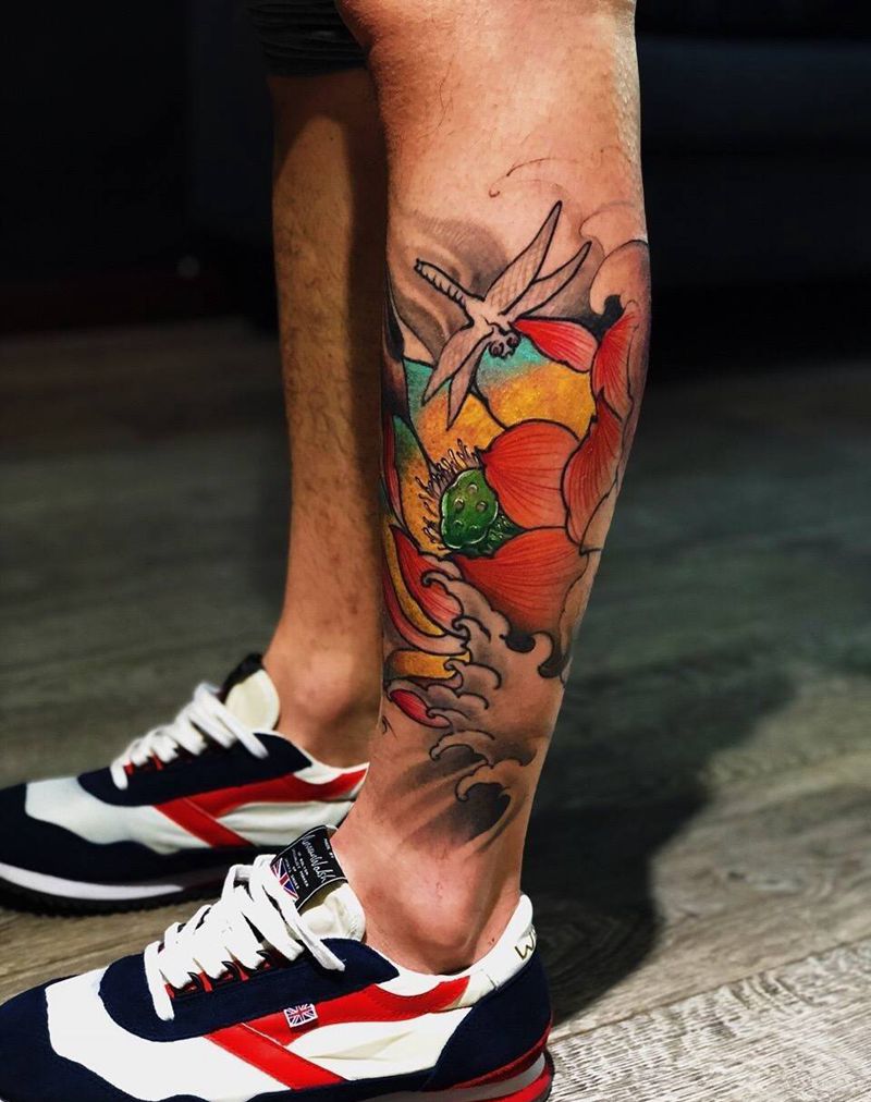 • T网红王老大花腿龙纹身图片_腿部新传统纹身图案