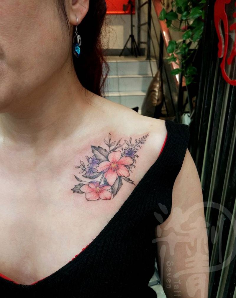 • 女性大花胸纹身_43张霸气漂亮的女性大花胸纹身图案作品