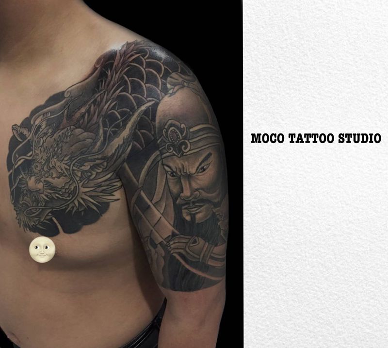当前位置: 首页 >河北省唐山市纹身店-魔客刺青纹身图案>关公龙半胛纹身图片_新传统纹身图案