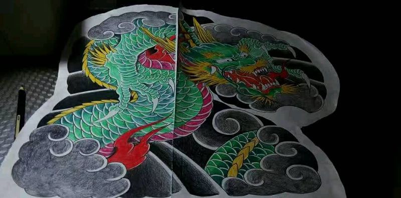 • T云龙九郎纹身图片_背部老传统云龙九郎纹身图案