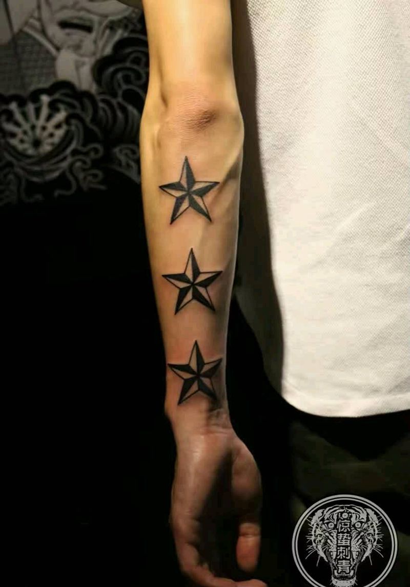 五星图腾纹身图片_手臂清新图腾唐山惊蛰成品纹身图案