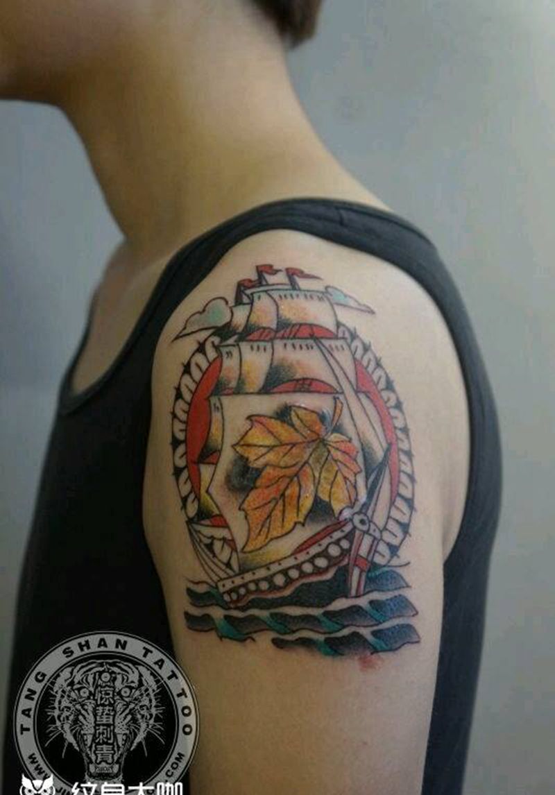 old school 帆船纹身图片_手臂欧美原创唐山惊蛰女性纹身成品纹身图案