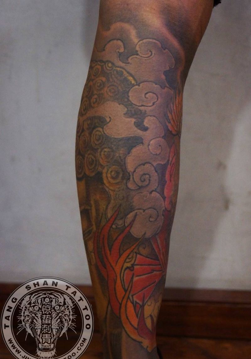 • T网红王老大花腿龙纹身图片_腿部新传统纹身图案
