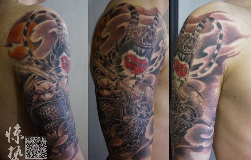 当前位置: 首页 >河北省唐山市纹身店-惊蛰刺青纹身图案>悟空包大臂纹身图片_成品手臂传统惊蛰刺青鬼神纹身图案