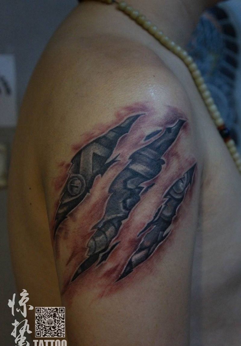 机械大臂纹身图片_成品手臂欧美写实原创惊蛰刺青纹身图案
