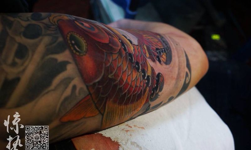 • T网红王老大花腿龙纹身图片_腿部新传统纹身图案