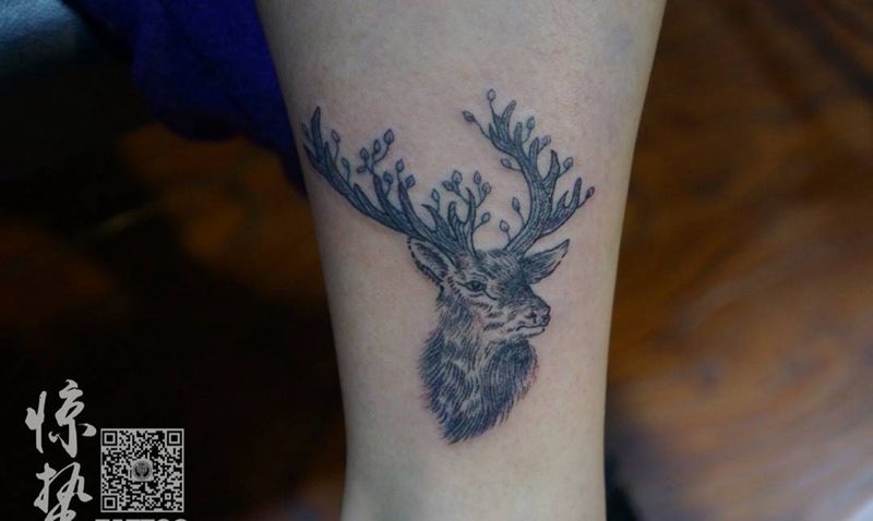 当前位置: 首页 >河北省唐山市纹身店-惊蛰刺青纹身图案>小腿鹿头纹身图片_成品腿部清新动物惊蛰刺青纹身图案