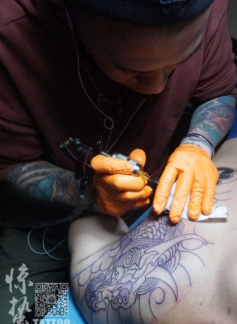 黑灰满背纹身图案