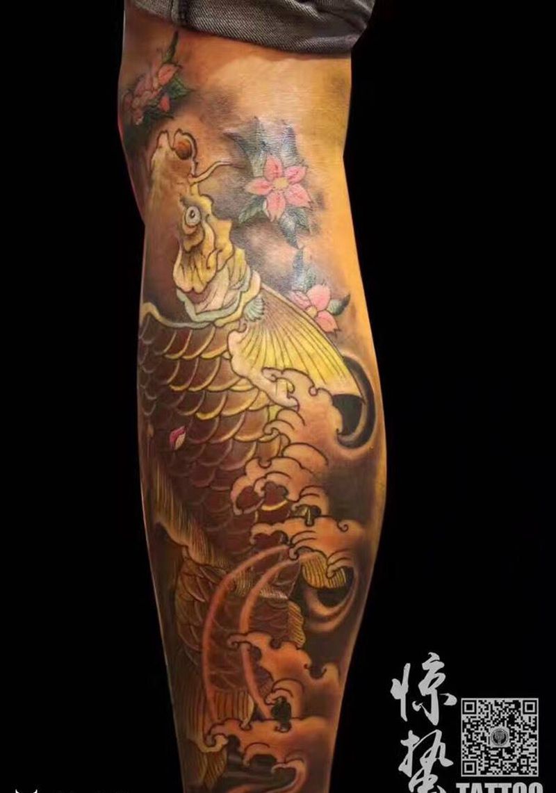 当前位置: 首页 >河北省唐山市纹身店-惊蛰刺青纹身图案>黄金鱼纹身图片_成品腿部传统动物纹身图案