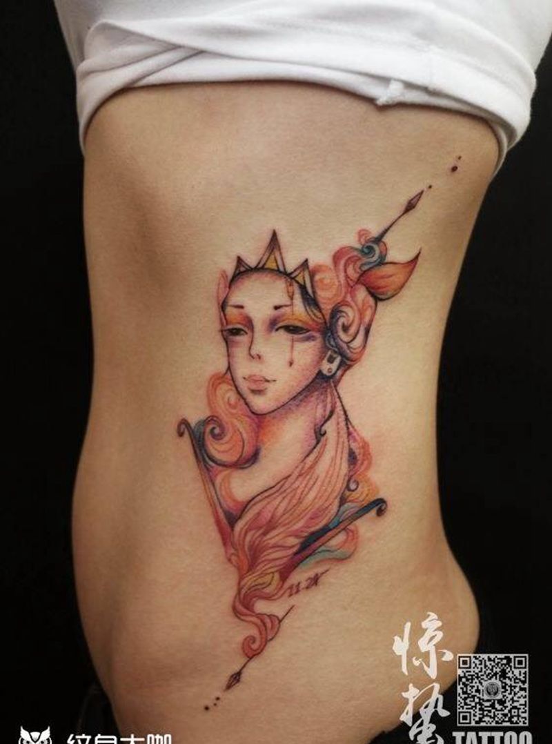 当前位置: 首页 >河北省唐山市纹身店-惊蛰刺青纹身图案>射手座纹身图片_成品腰部清新人物图案纹身图案