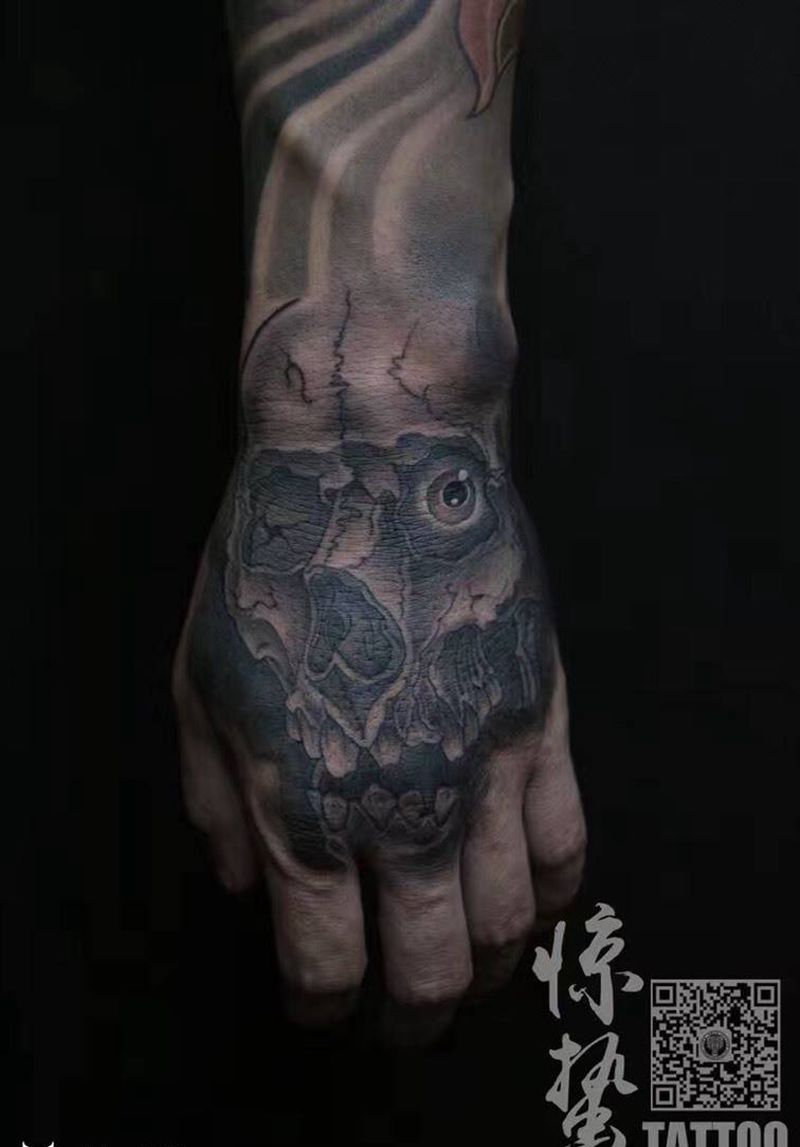 当前位置: 首页 >河北省唐山市纹身店-惊蛰刺青纹身图案>骷髅手纹身图片_成品手部传统鬼神纹身图案