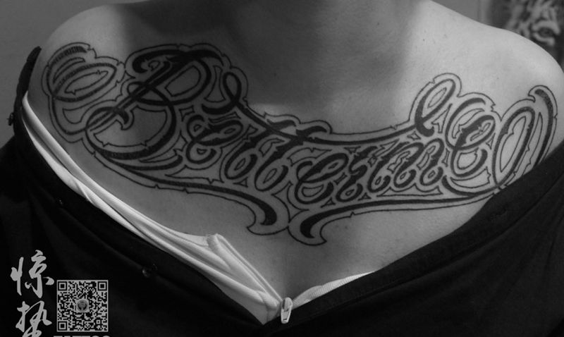 当前位置: 首页 >河北省唐山市纹身店-惊蛰刺青纹身图案>花体字纹身图片_成品胸部腹部清新字符原创惊蛰刺青纹身图案