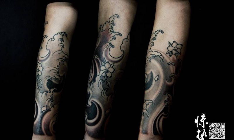 当前位置: 首页 >河北省唐山市纹身店-惊蛰刺青纹身图案>水浪包小臂纹身图片_成品手臂传统原创惊蛰刺青纹身图案