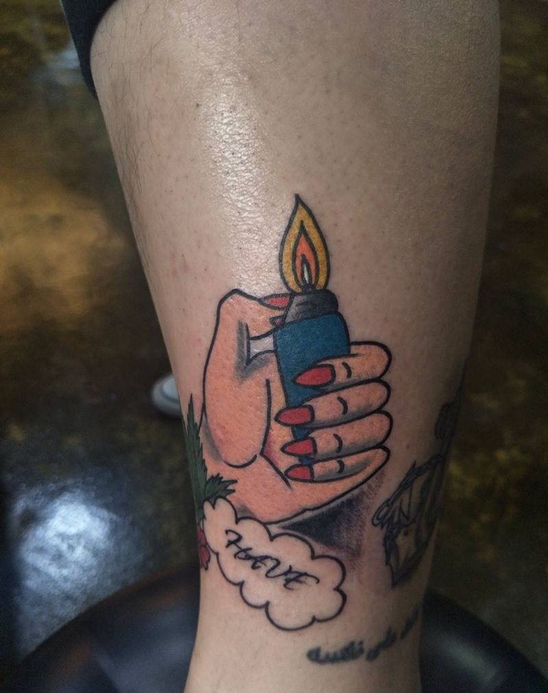 • T包小腿吹火男+阿多福纹身图片_腿部老传统新传统吹火男阿