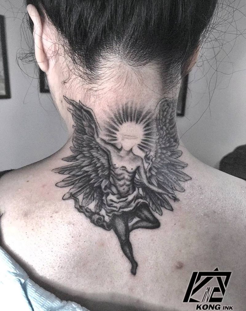 当前位置: 首页 >河北省唐山市纹身店-惊蛰刺青纹身图案>后颈天使纹身图片_颈部新传统纹身图案