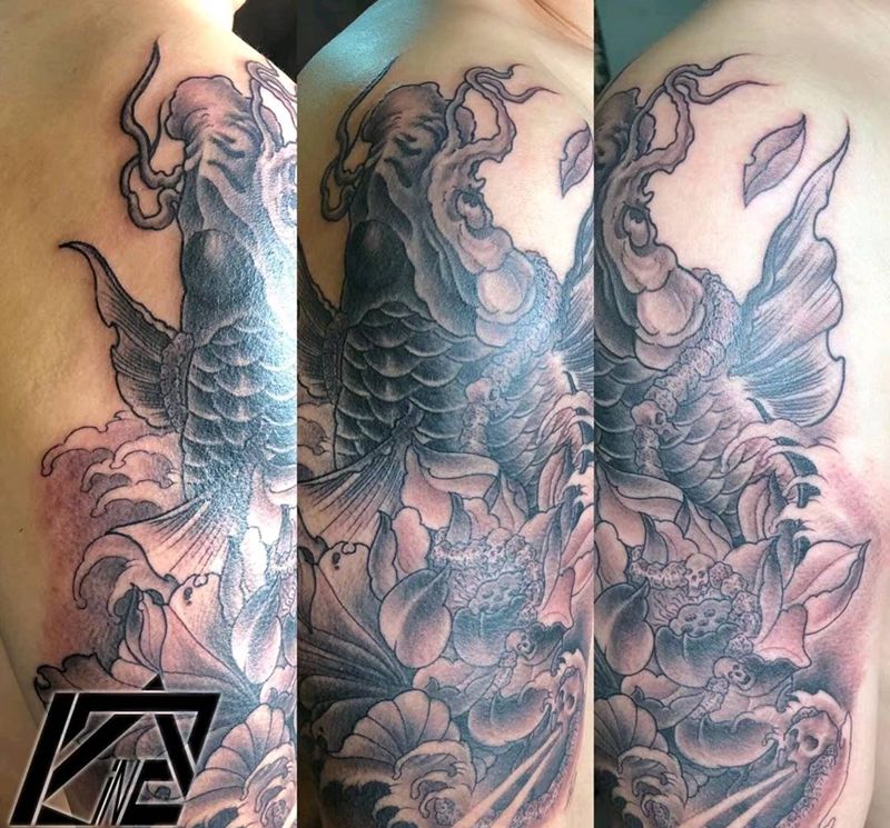 大臂鲤鱼纹身图片_新传统纹身图案