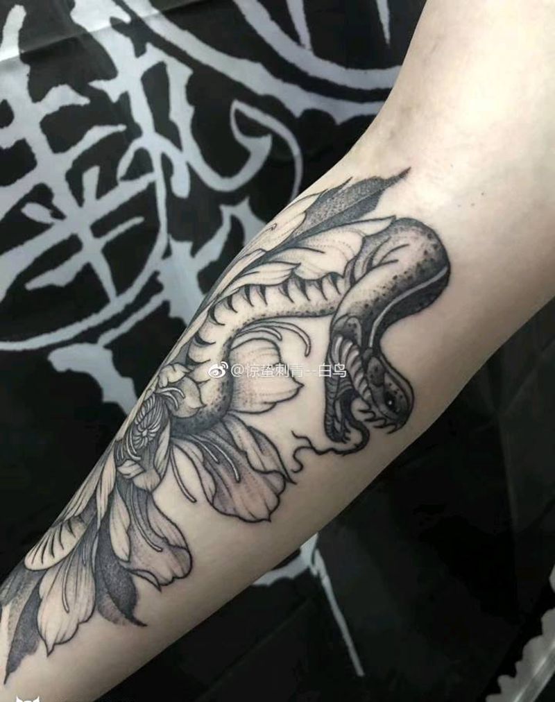 一组15张莲花纹身手