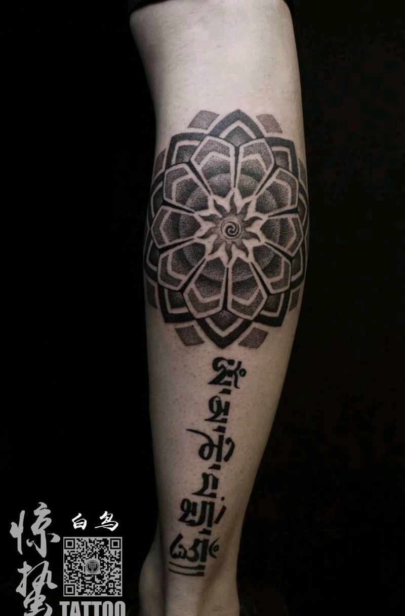 小腿点刺纹身图片_腿部图腾点刺纹身图案