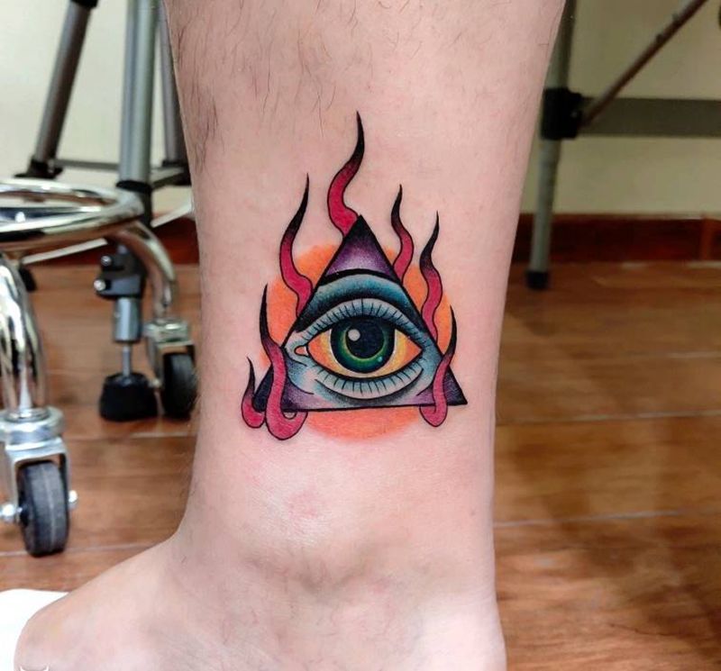 上帝之眼设计纹身图片_腿部New School上帝之眼纹身图案