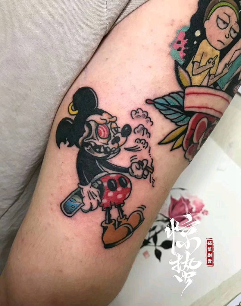 当前位置: 首页 >河北省唐山市纹身店-惊蛰刺青纹身图案>拼接花臂-米奇纹身图片_手臂Old School纹身图案