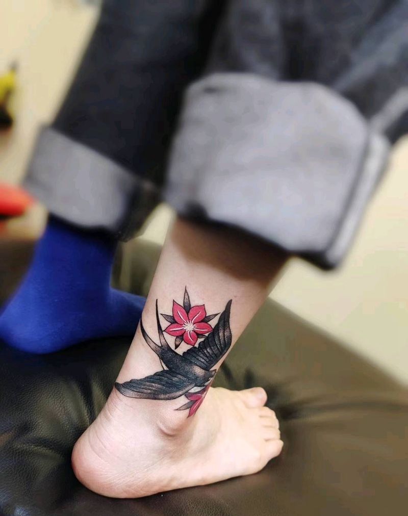 脚踝旧纹身遮盖纹身图片_腿部Old School纹身图案