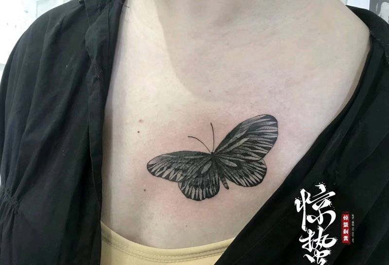 当前位置: 首页 >河北省唐山市纹身店-惊蛰刺青纹身图案>蝴蝶遮盖纹身图片_胸部Old SchoolNew School纹身图案