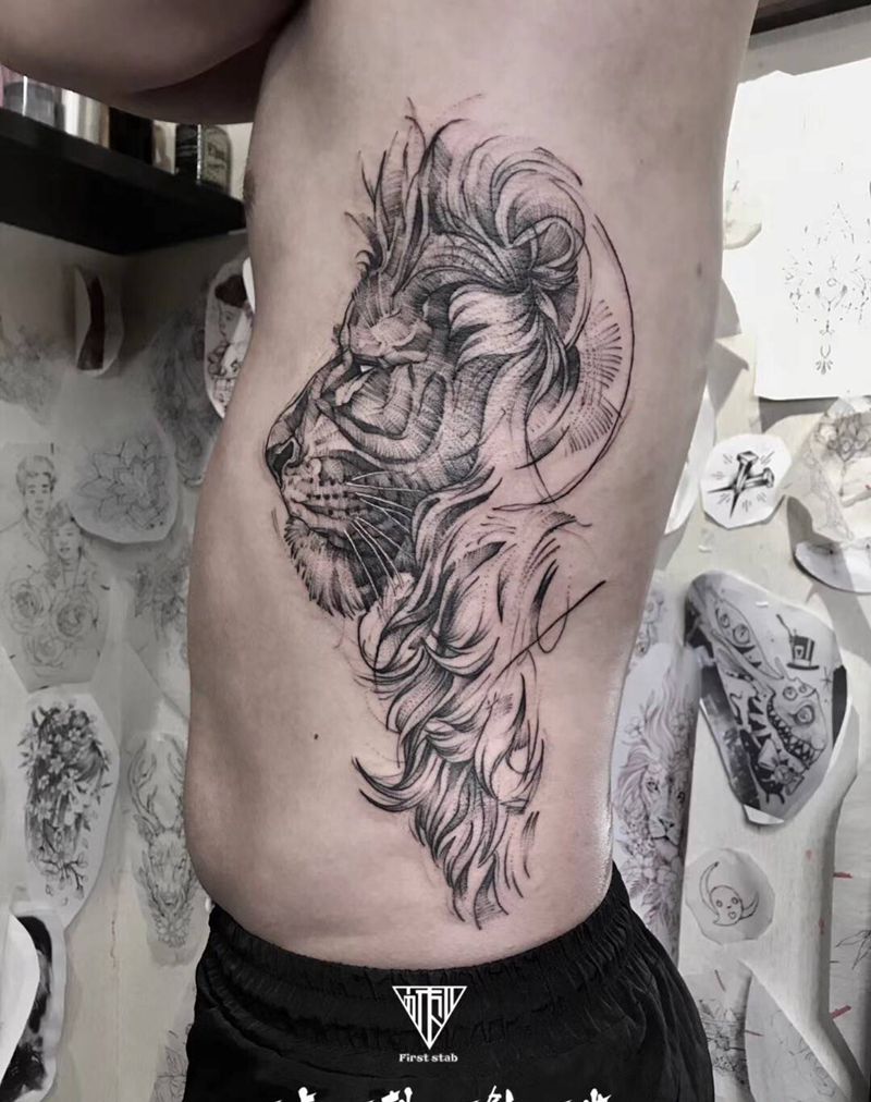 当前位置: 首页 >河北省唐山市纹身店-惊蛰刺青纹身图案>侧腰雄狮纹身图片_腰部纹身图案