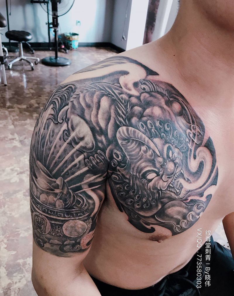 当前位置: 首页 >河北省秦皇岛市纹身店-纹尊堂刺青纹身图案>貔貅聚宝盆纹身图片_手臂胸部新传统纹身图案